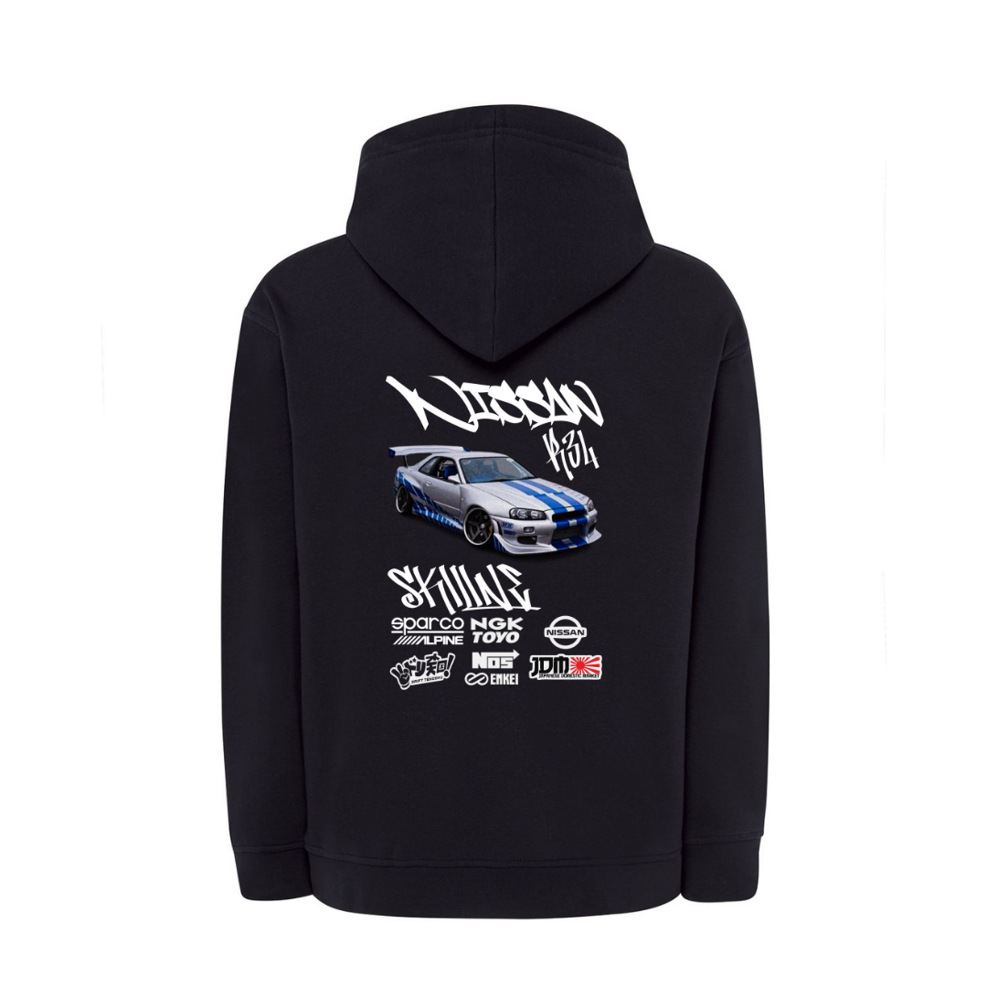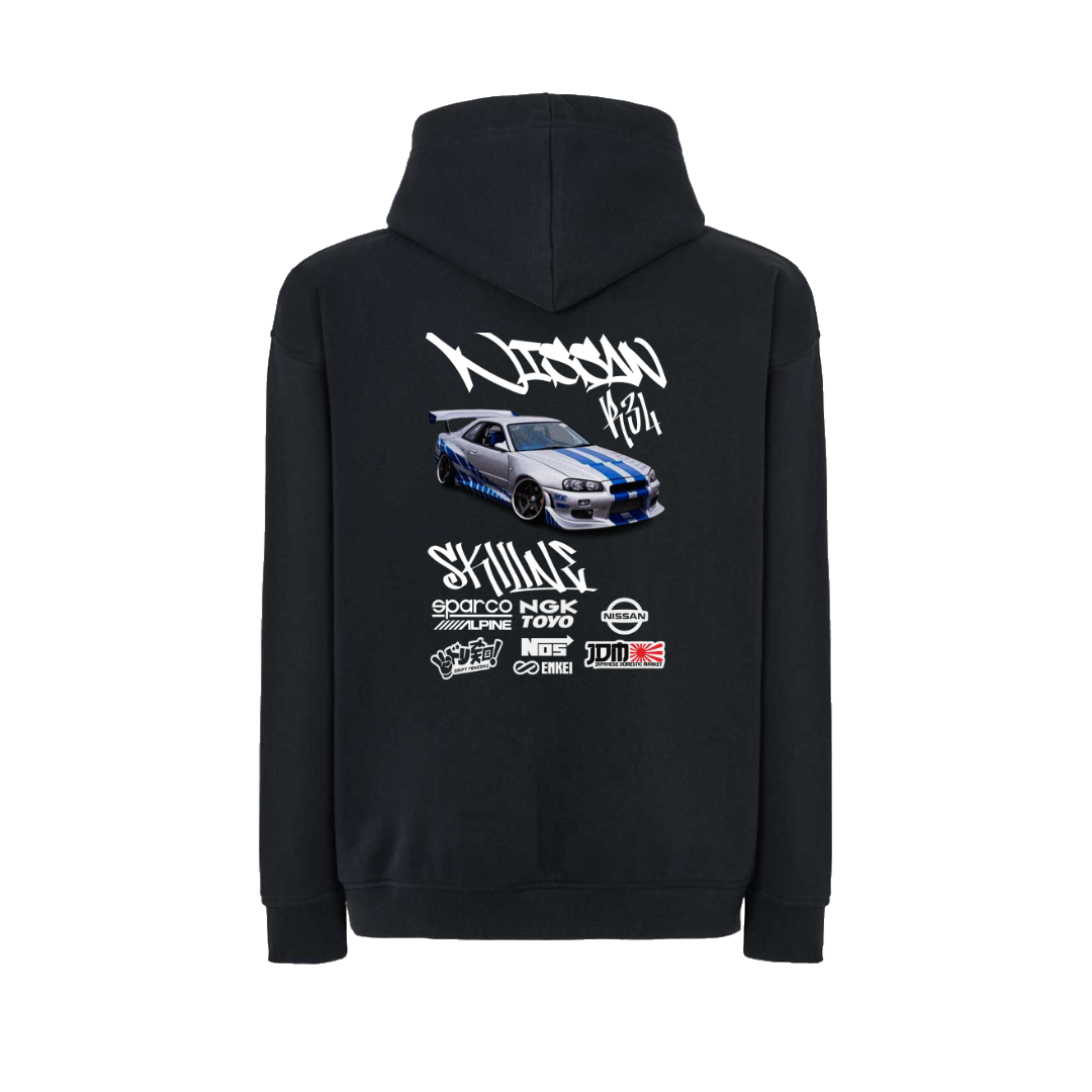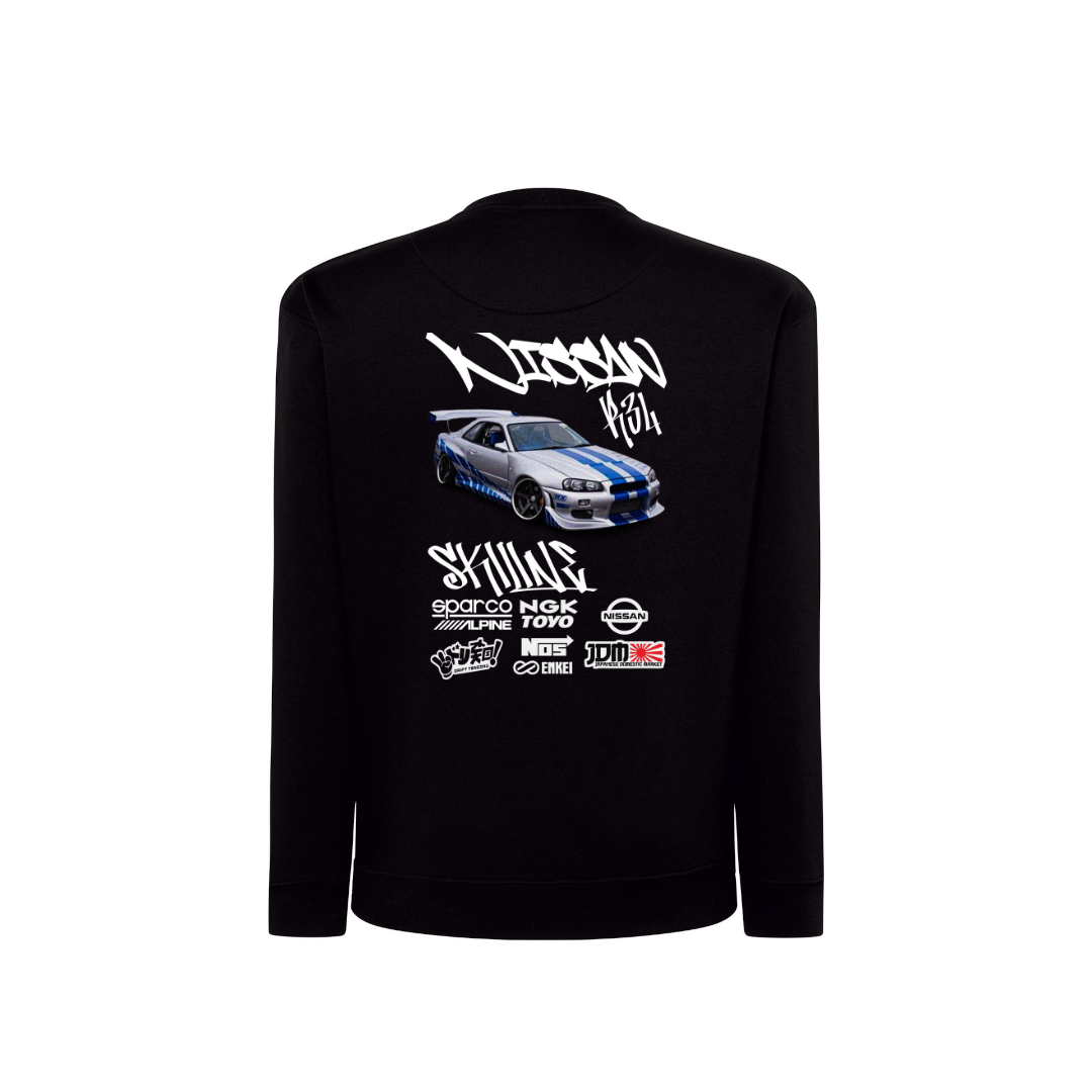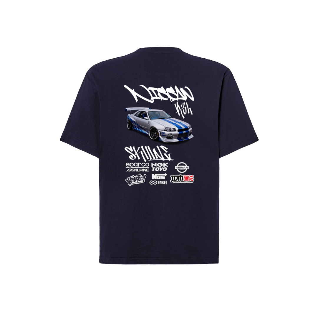 Luce tu pasión por los motores con este diseño del Nissan Skyline R34 en DTF. Impreso con colores vivos y gran detalle, ofrece un acabado duradero y cómodo al tacto. Ideal para destacar tu estilo automovilístico en cualquier ocasión. ¡Haz que tu prenda acelere miradas! 🏎️✨